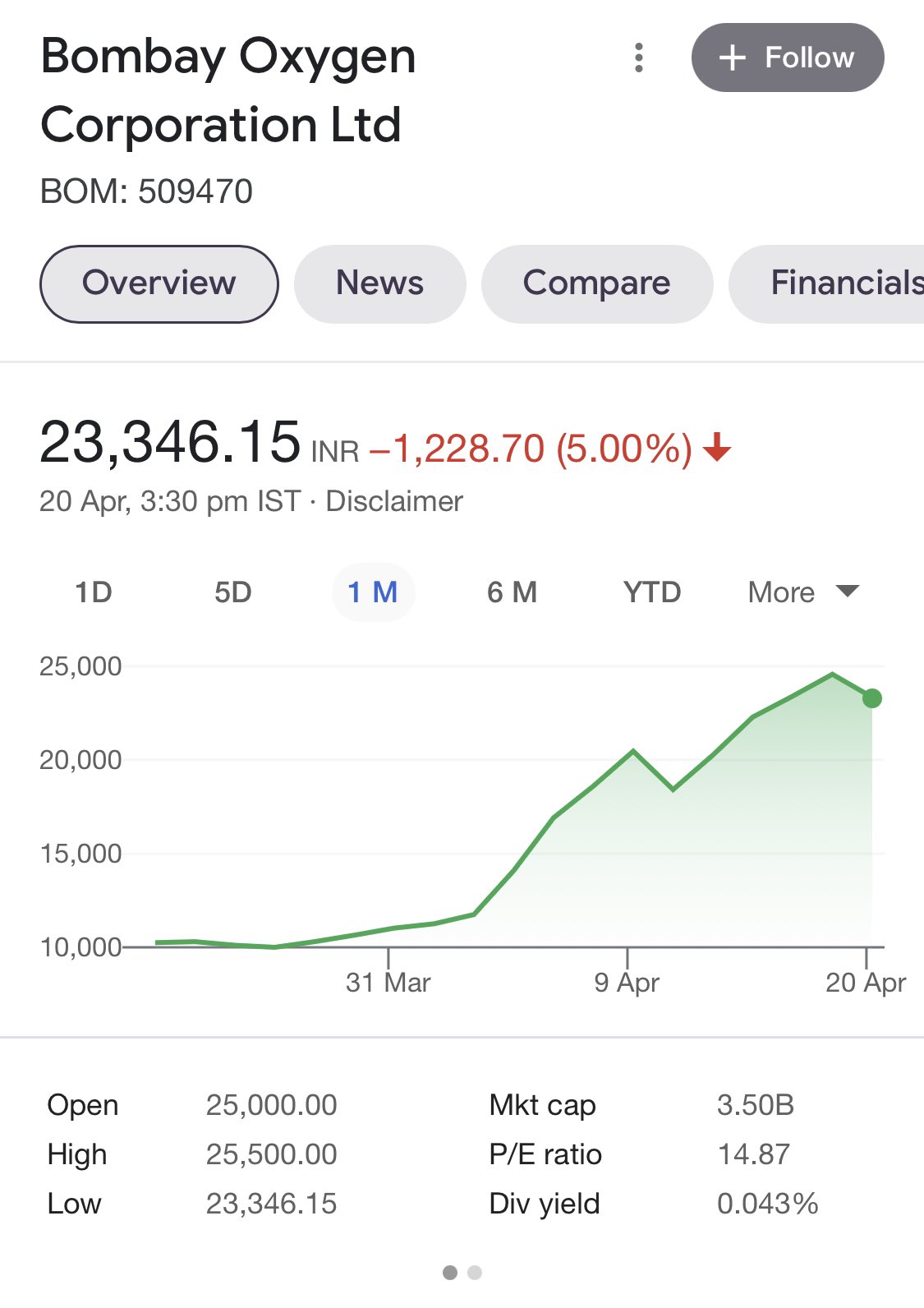 Parveen Kaswan On Twitter Imagine The Level Of Reading We Do The Share Price Of Bombay Oxygen Corporation Ltd Doubled In Just One Month Twist Is It Doesn T Sell Oxygen But Who Will Do The Basic Research Https T Co Tjtrk6zs9b